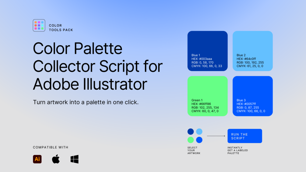 Turn your Illustrator artwork into a clean, shareable palette — instantly.